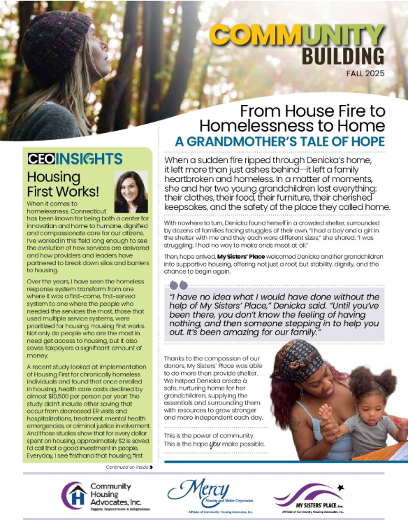 For a copy of our annual reports, please contact: ascheidecker@mercyhousingct.org