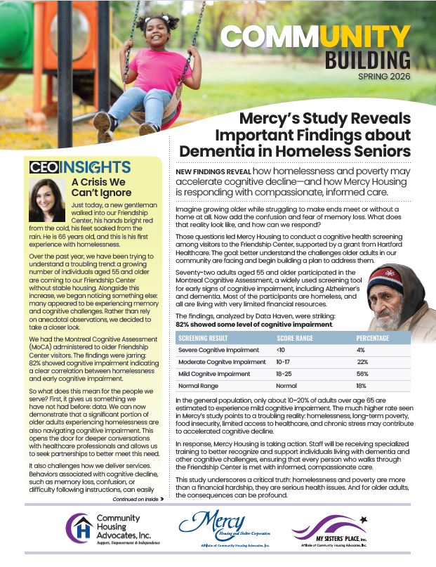 What is the connection between homelessness, poverty, and cognitive impairment? Read our quarterly newsletter to find out.